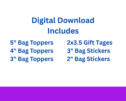 Digital File: Printable Happy BirthdayTreat/Cookie Bag Toppers, Gift Tags, & Stickers Bundle