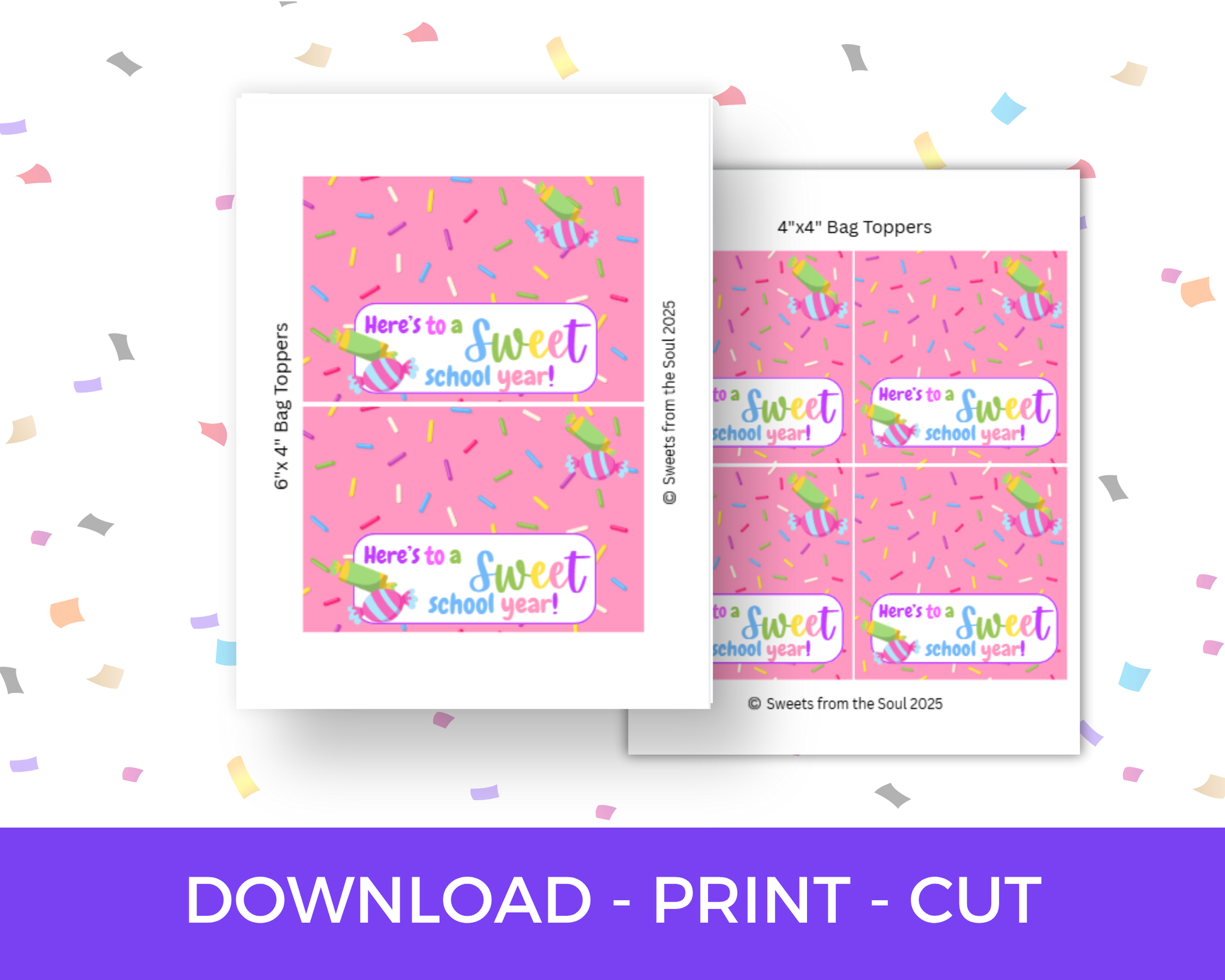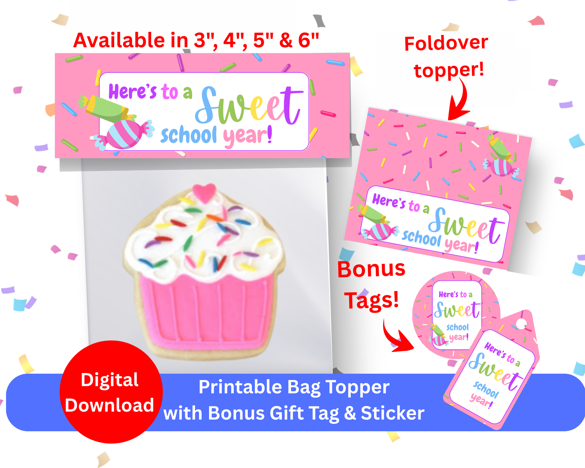 Digital File: Printable Here's to a Sweet School Year Bag Toppers, Gift Tags, & Stickers Bundle