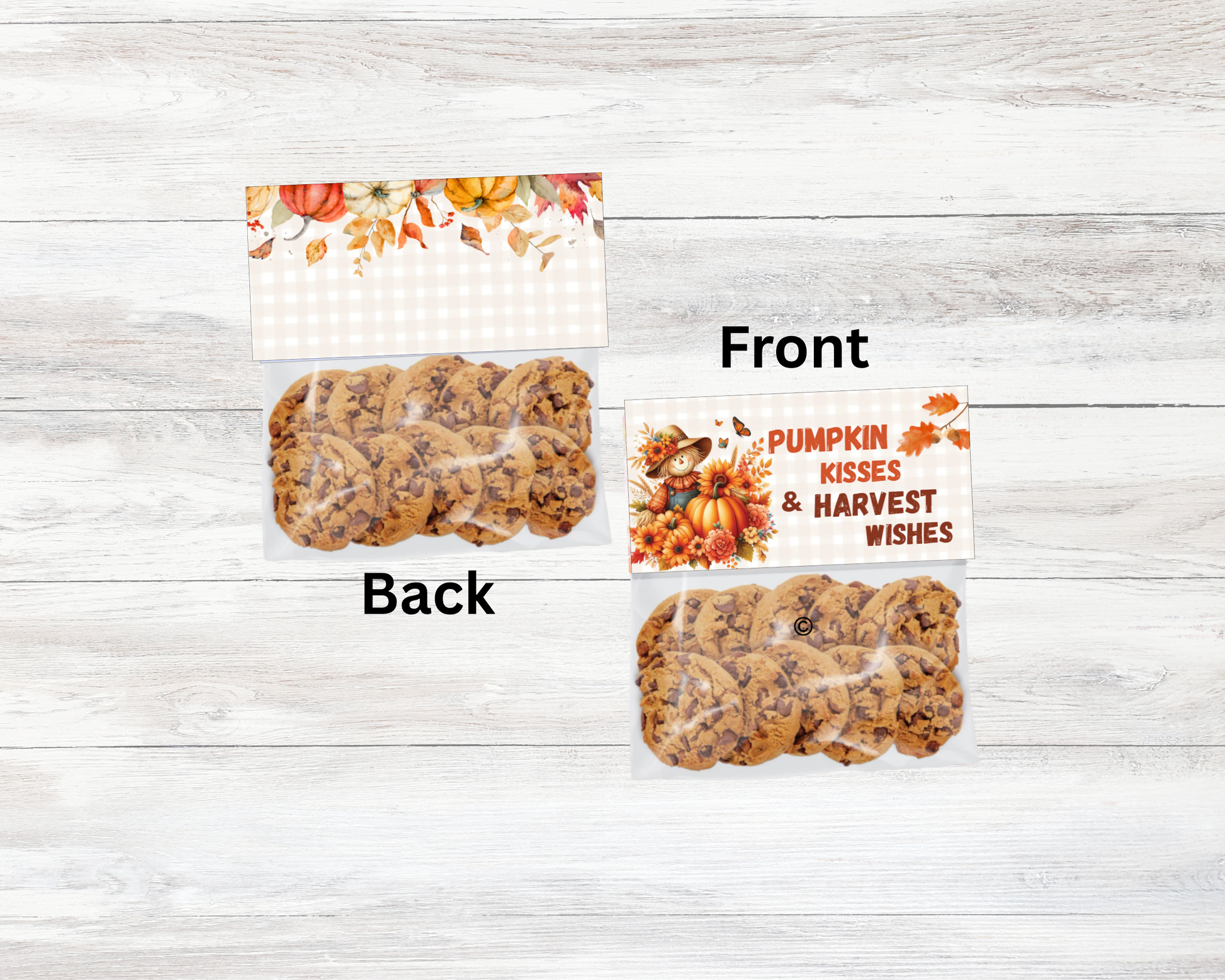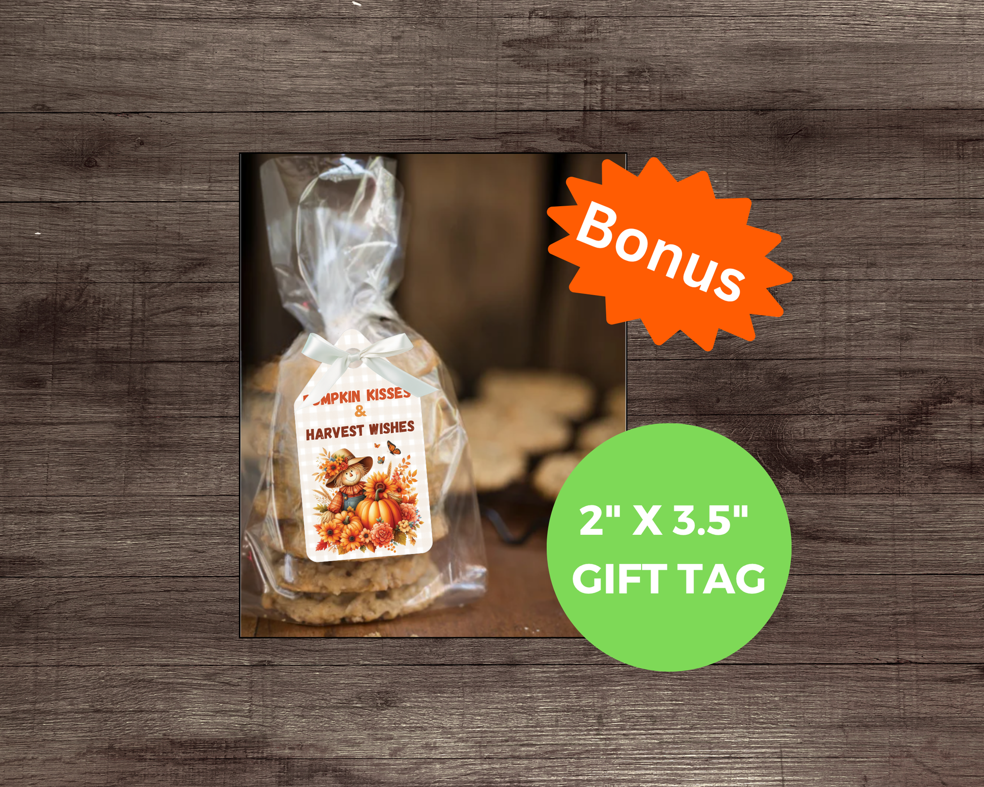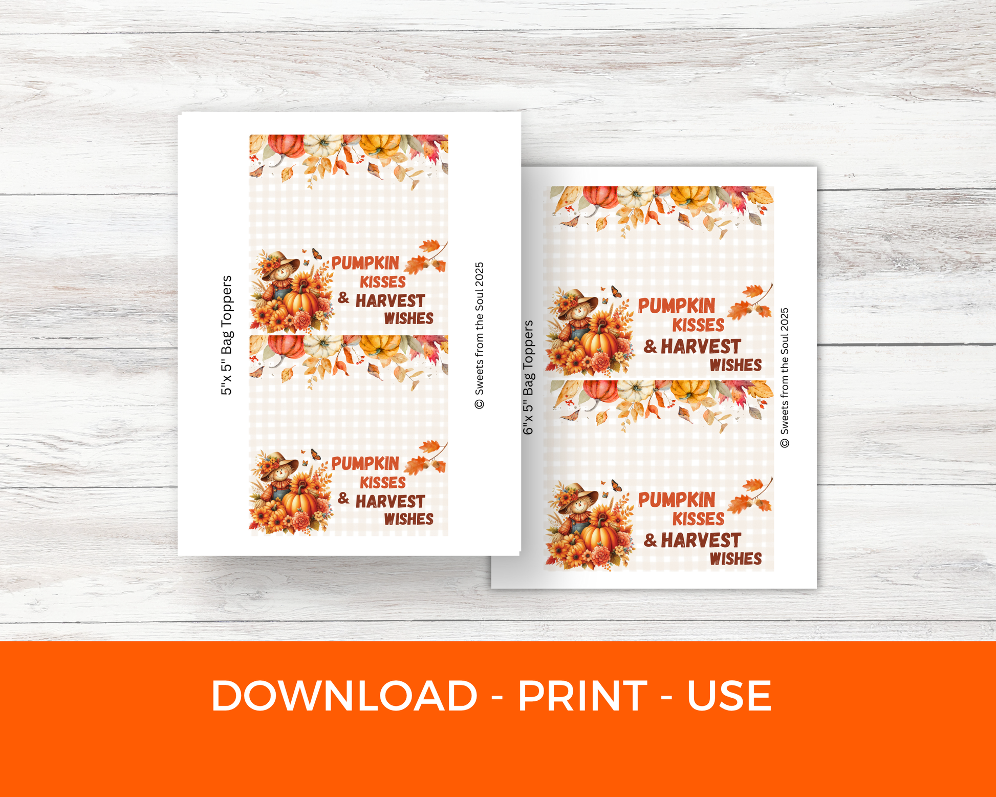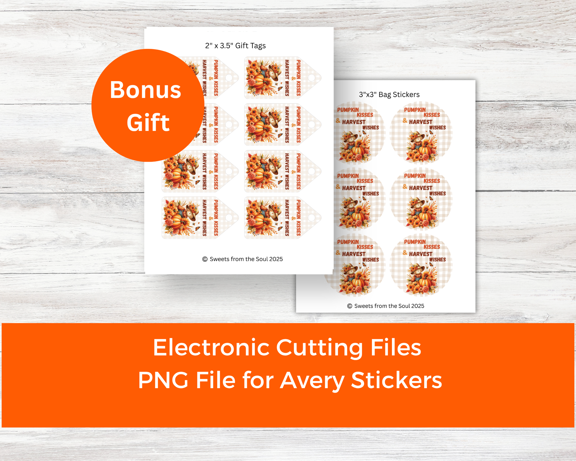 Digital File: Printable Pumpkin Kisses and Harvest Wishes Bag Toppers, Gift Tags, & Stickers Bundle