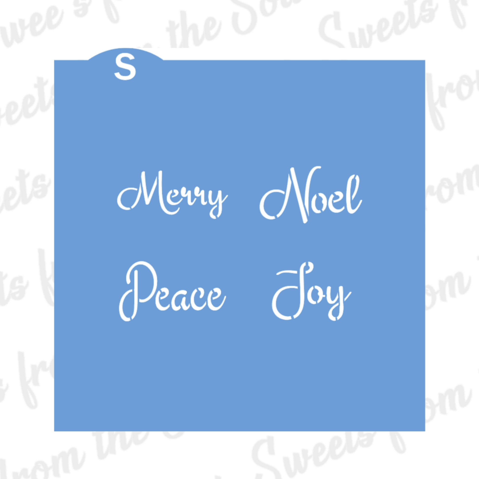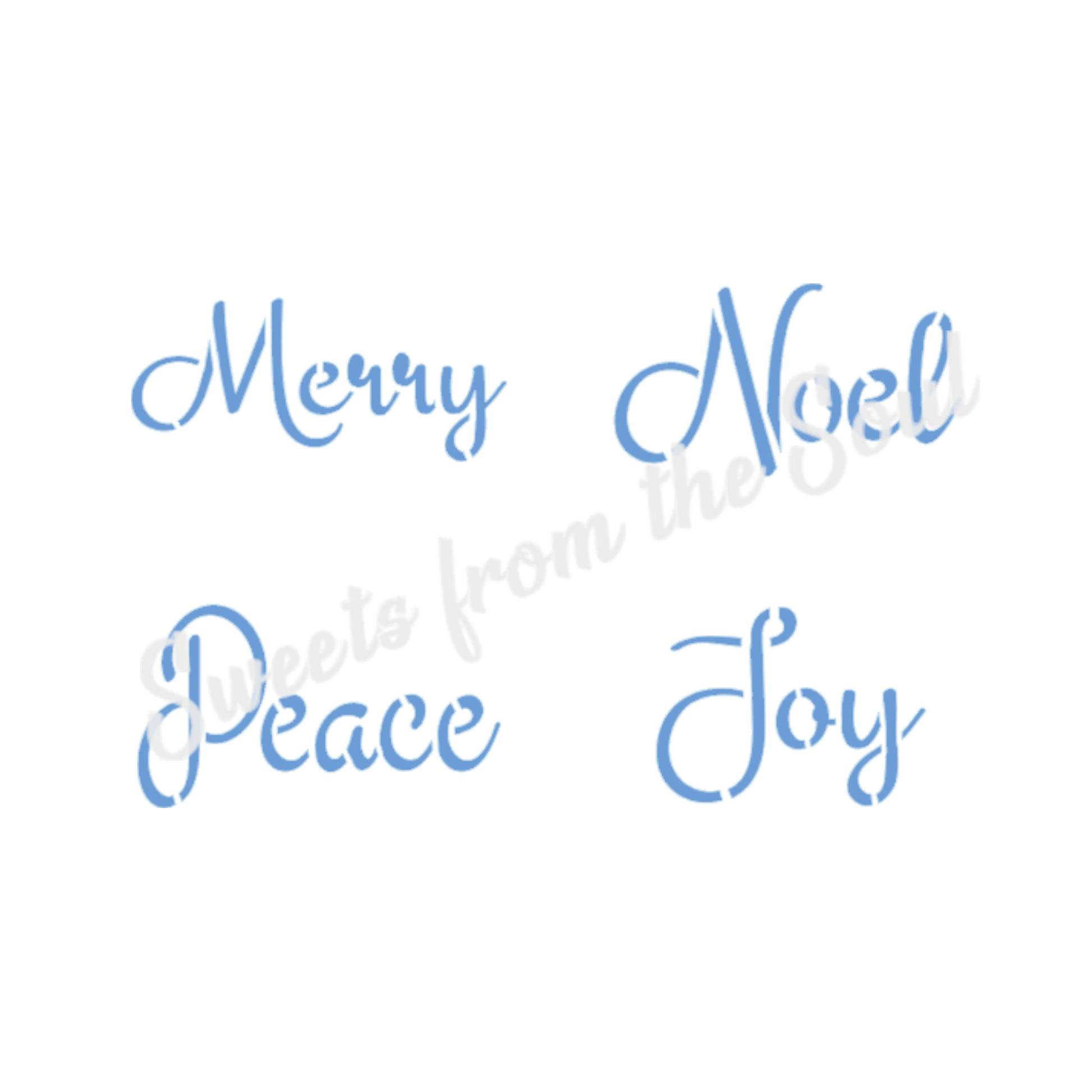 This 3-piece stencil set includes a stencil with four greetings, a frames stencil, and a stencil for creating shadows along with masking pieces. The masking pieces can be used when the message is being applied over another design.