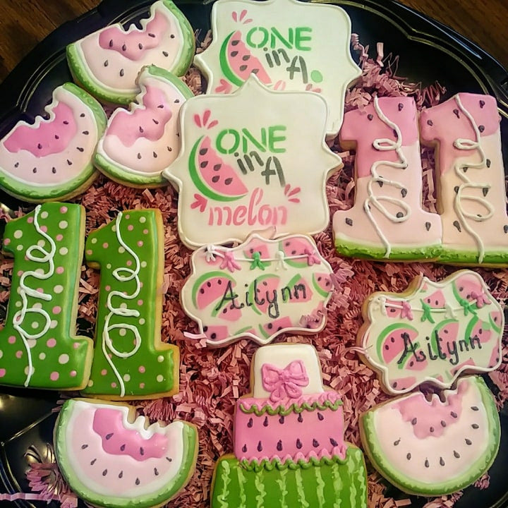The Three Piece Watermelon Background Stencil is the perfect background for that watermelon themed party. Pair it with the 'One in a Melon' stencil and the watermelon cutter for a beautiful cookie set!